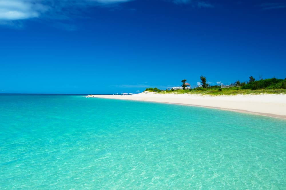 白い砂浜にエメラルドグリーンの海、青い空と太陽のもと、思いっきり夏を味わえます。